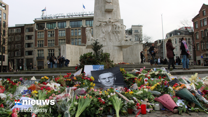 Bij het Nationaal Monument op de Dam in Amsterdam is een herdenkingsplek voor de de Russische oppositieleider Aleksej Navalny. De 47-jarige politieke activist overleed op 16 februari in een strafkolonie.
