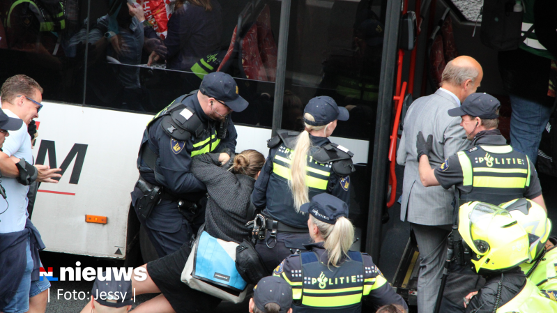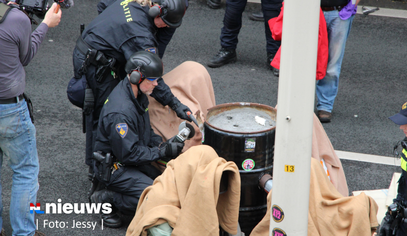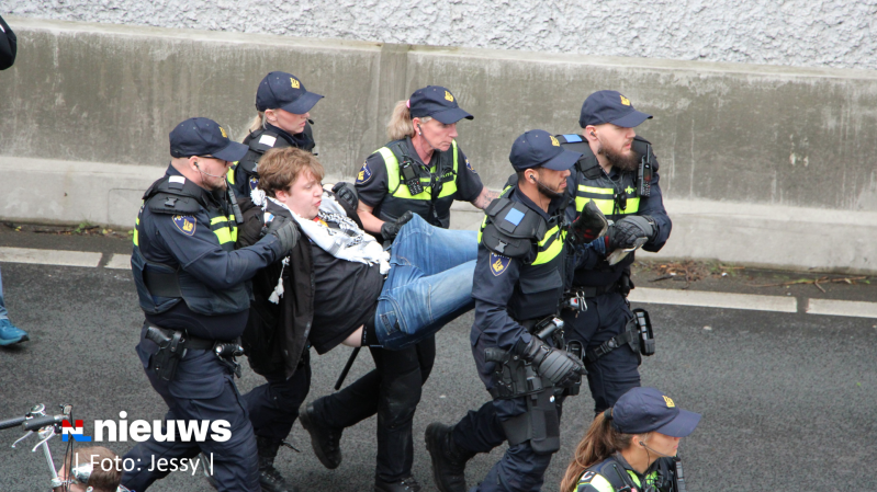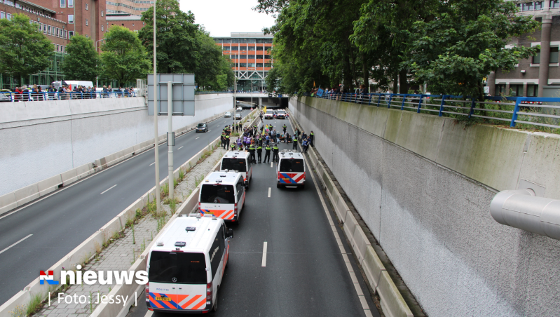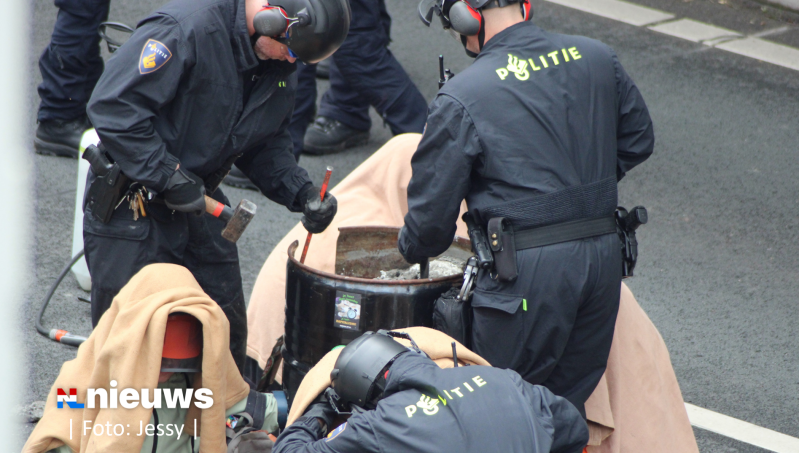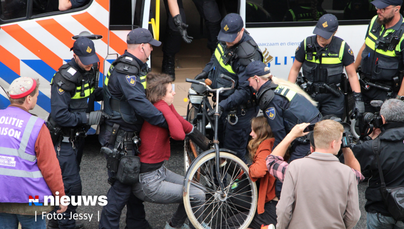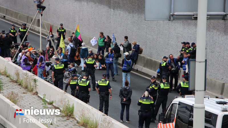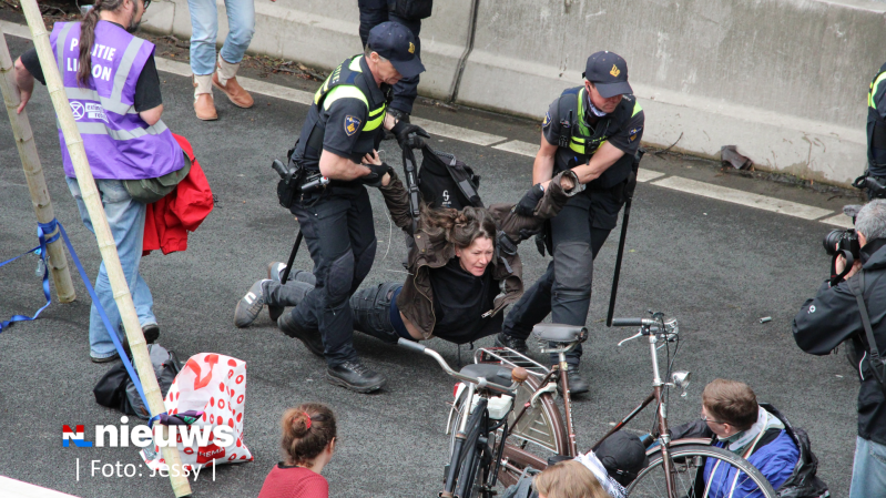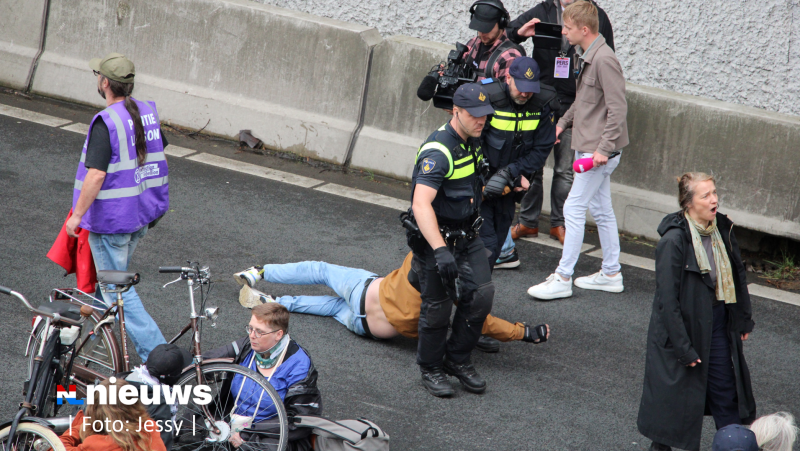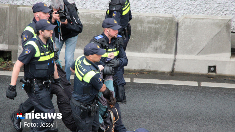 Demonstranten van Extinction Rebellion hebben dinsdagmiddag de A12 voor ruim anderhalf uur geblokkeerd.