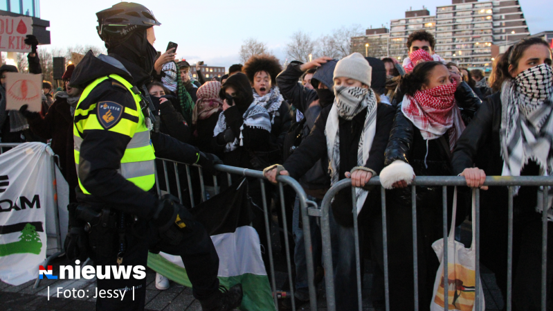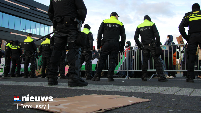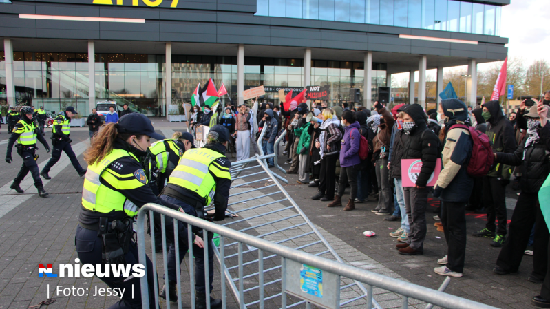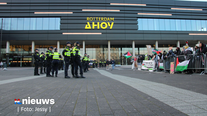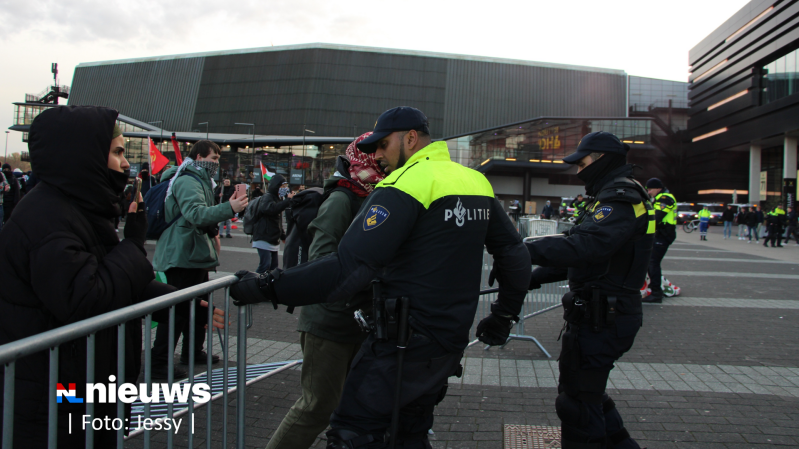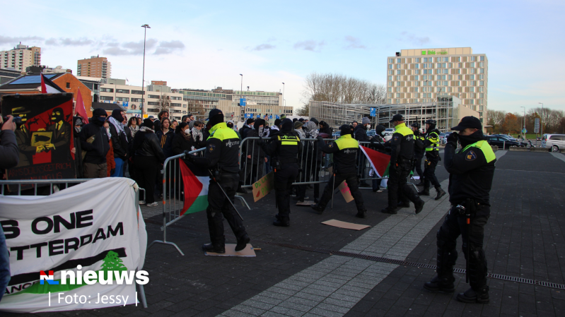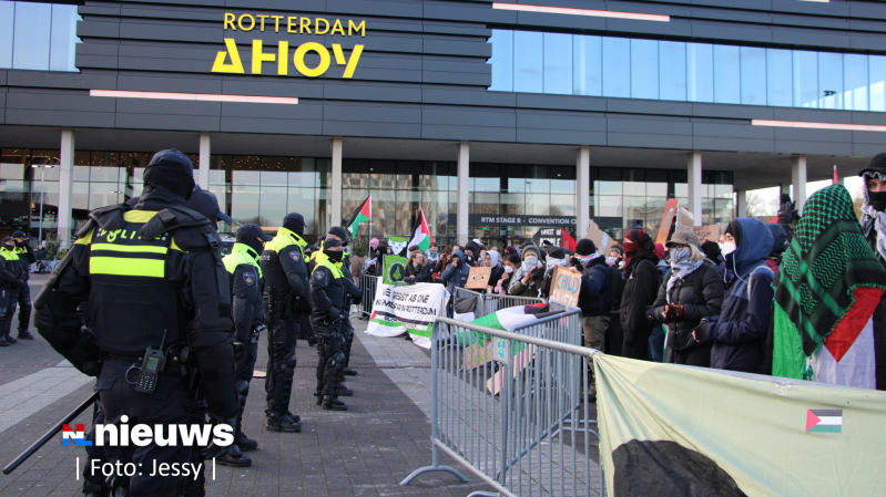 De politie heeft dertien mensen aangehouden bij protesten rondom de wapenbeurs in Ahoy in Rotterdam. De Mobiele Eenheid moest meerdere keren optreden vanwege opstootjes.