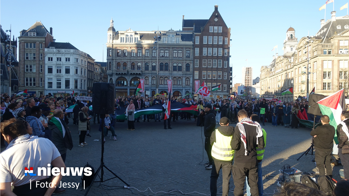 Ruim 200 mensen verzamelden zich woensdag op de Dam in Amsterdam voor een pro-Palestijns protest tegen de recente Israëlische aanvallen op Gaza, nadat Israël het staakt-het-vuren had verbroken.