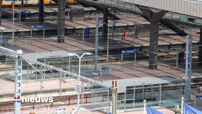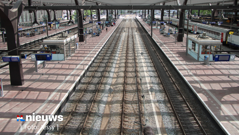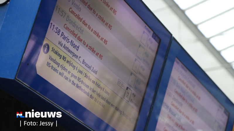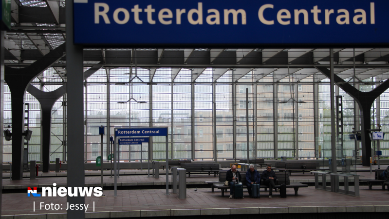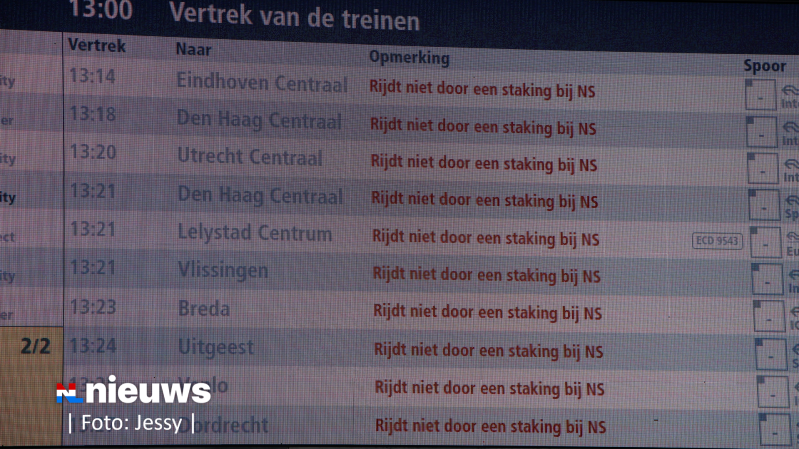 Op treinstation Rotterdam Centraal reed, naast de internationale trein, geen enkele NS-trein. Door een staking van NS-personeel lag het treinverkeer in het hele land plat.