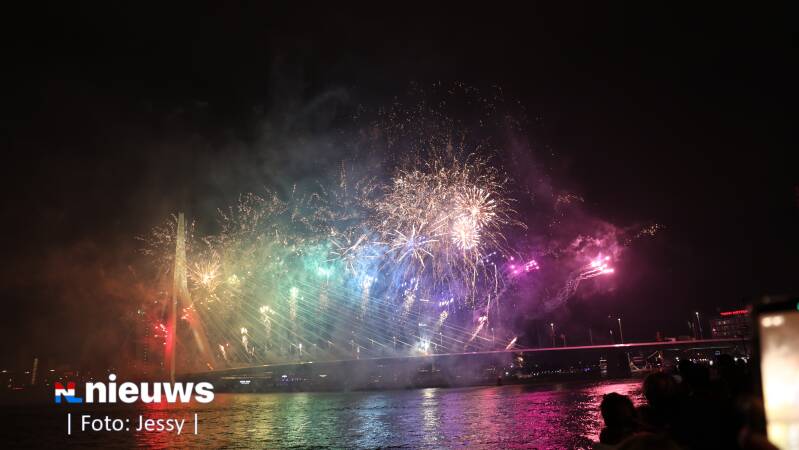 Het Nationale Vuurwerk in Rotterdam trok tijdens de jaarwisseling meer dan 80.000 mensen langs de kades, die zagen hoe een vuurwerkshow op de Erasmusbrug het jaar 2026 inluidde.