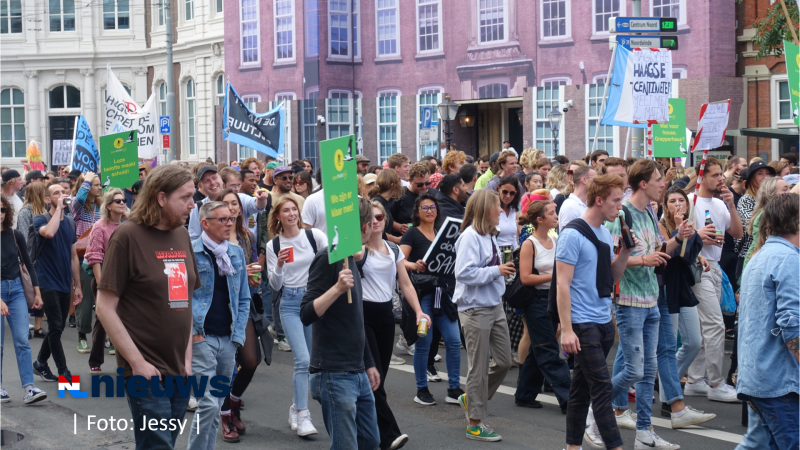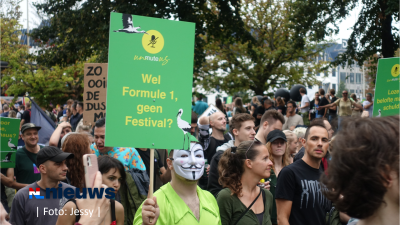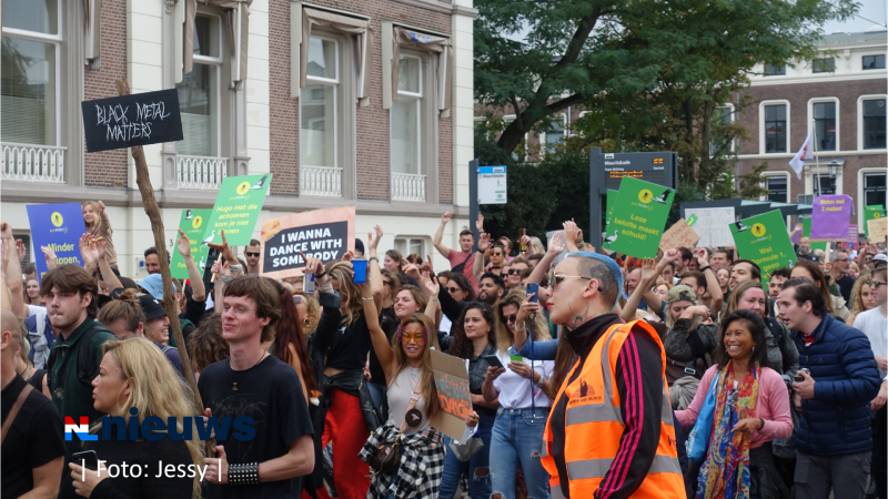 Duizenden demonstranten zijn vandaag naar Den Haag gekomen voor protestmars Unmute Us. De mensen uit de evenementenbranche en festivalgangers verzamelden zich op het Malieveld om vervolgens door de stad te trekken.