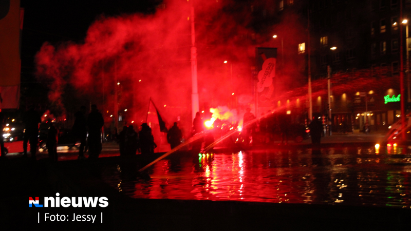 Tientallen fans van Trabzonspor verzamelde zich zaterdagavond rondom het fontein aan het Hofplein in Rotterdam. Ze vierde bij de fontein het kampioenschap van Trabzonspor in de Süper Lig.