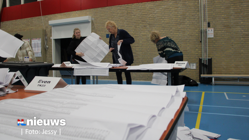 De stembureaus tellen de stemmen van de Tweede Kamerverkiezingen.
