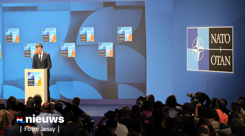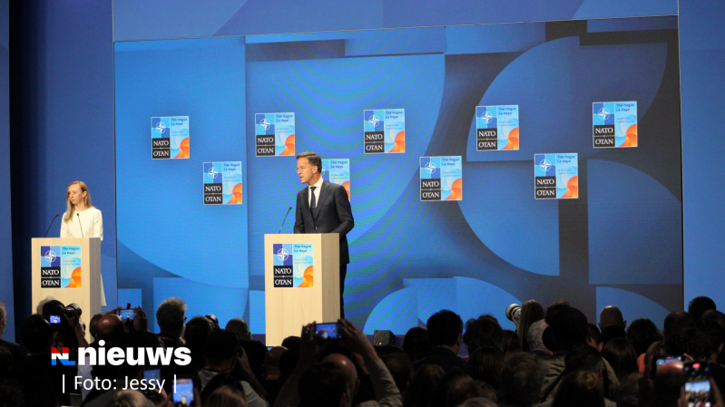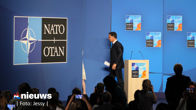 Secretaris-generaal van de NAVO Mark Rutte heeft woensdag, aan het einde de NAVO-top een persconferentie geven.