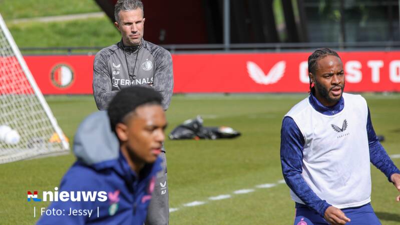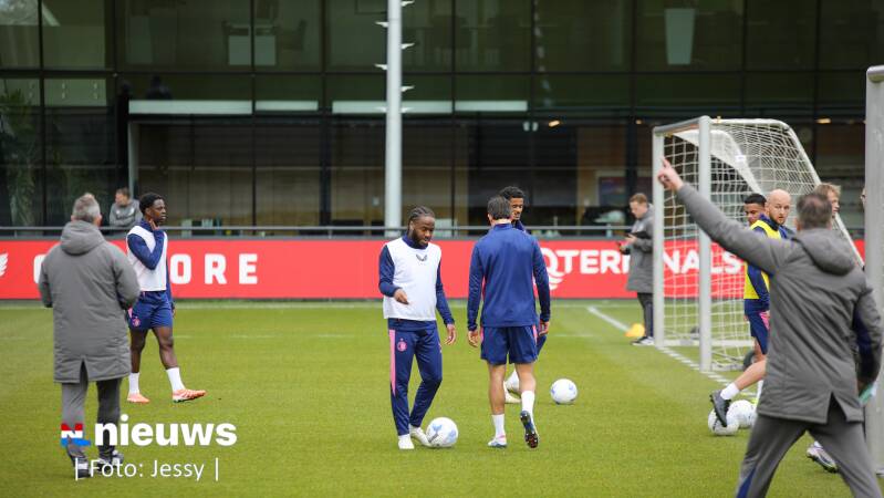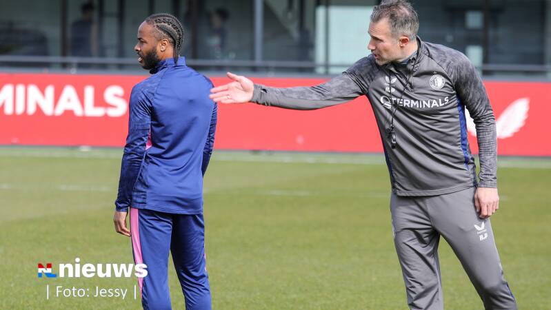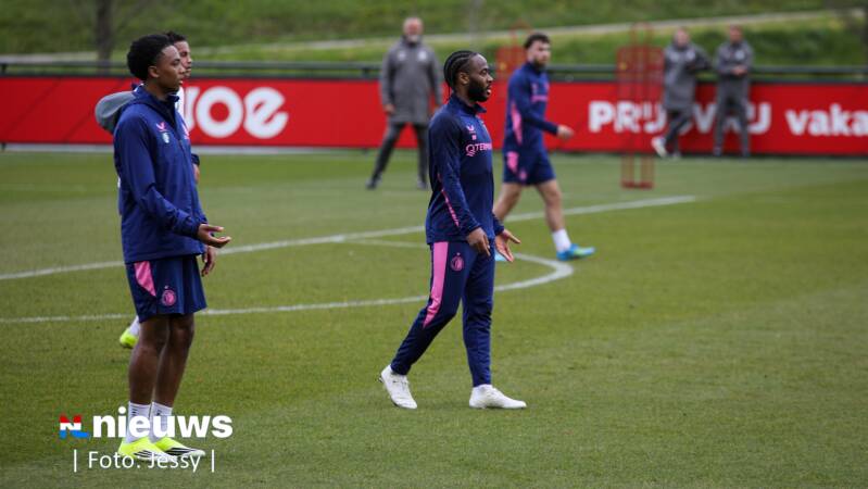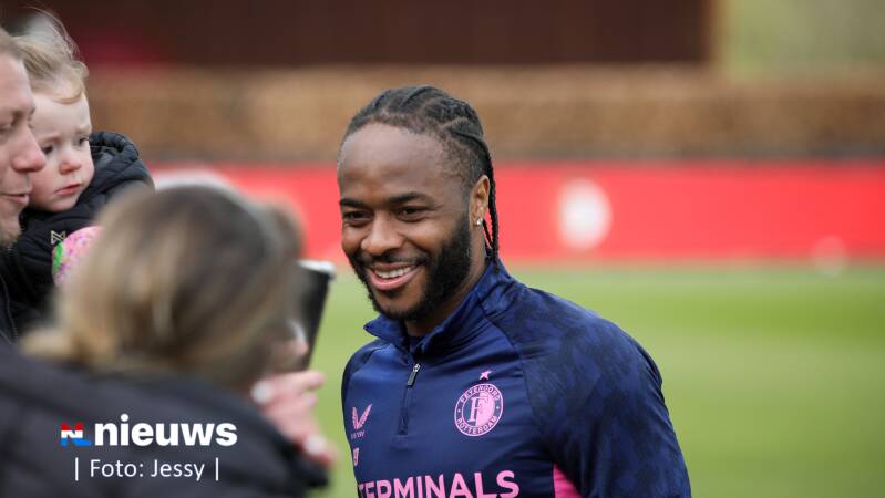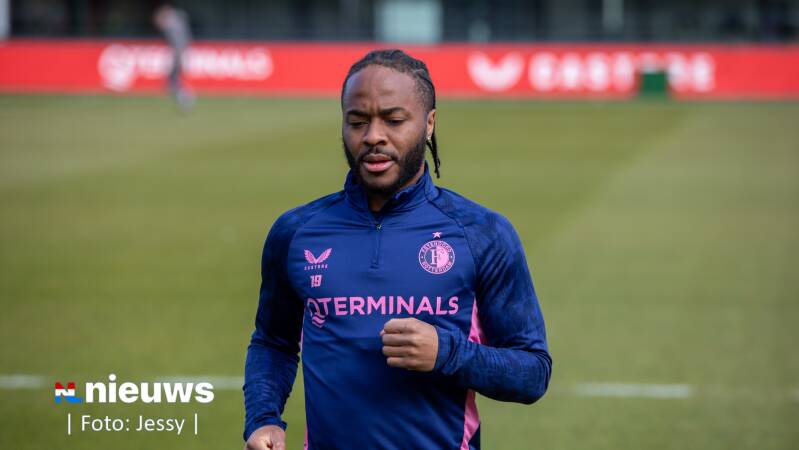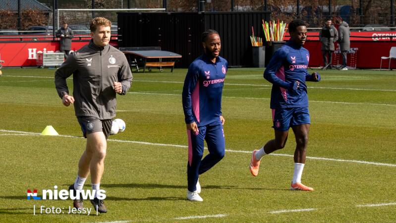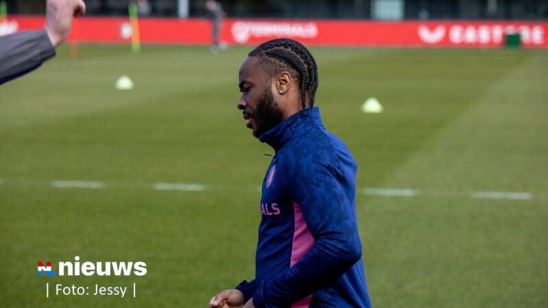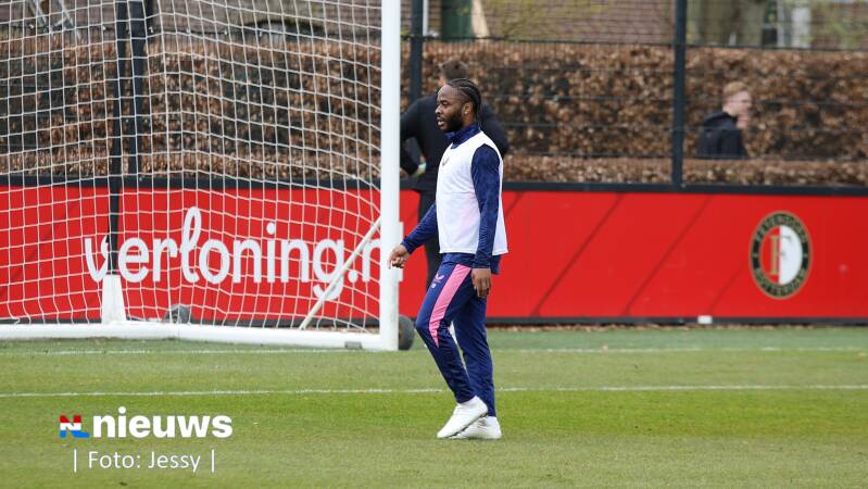 Raheem Sterling tijdens de training op Trainingscomplex 1908. Feyenoord wist op 12 februari met zijn komst voor een stunt te zorgen. De 82-voudig Engels international maakte tien dagen later zijn debuut voor het team van Robin van Persie.